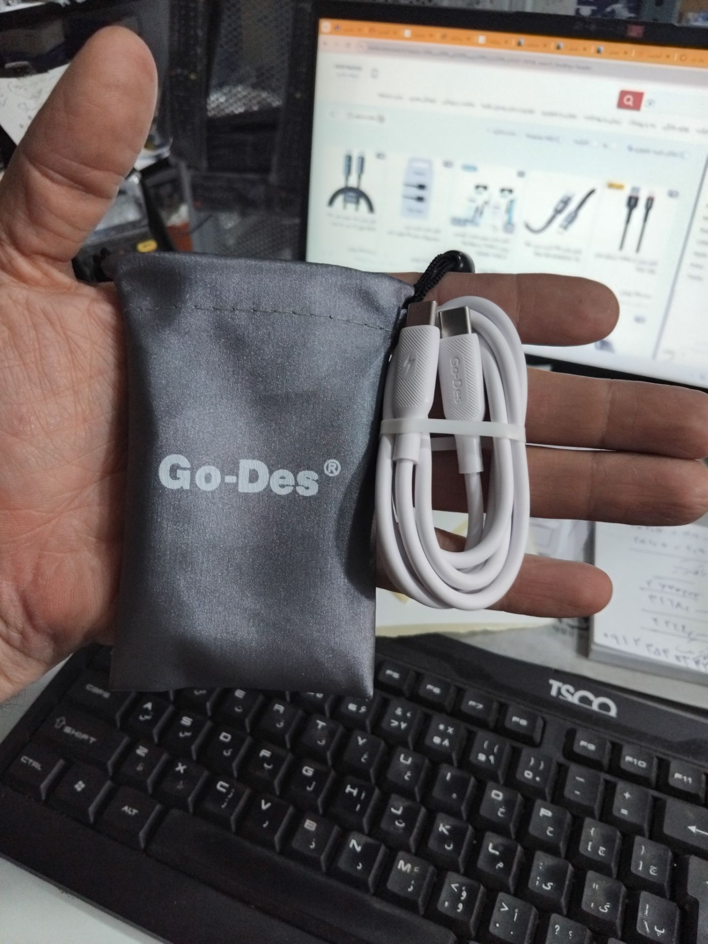 کابل شارژ دوسر تایپ سی مارک GO-DES درجه یک 60 وات درجه یک