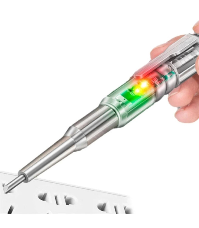 انتهای پیچ گوشتی را لمس و به محلی که قصد تست آن را دارید (برای مثال تست پریز برق) بزنید در صورتی که فاز شناسایی گردد LEDداخلی قرمز رنگ می شود بر روی نول LED داخلی سبز روشن می شود