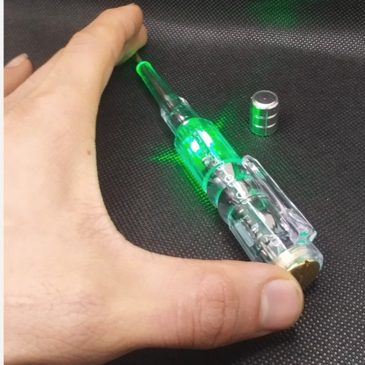 نوک پیچ گوشتی را به یکی از قطب های باتری زده و انتهای پیچ گوشتی را لمس و انگشت خود را به سر دیگر باتری بزنید در صورتی که باتری سالم و ولتاژ داشته باشد LED داخلی روشن خواهد شد .
